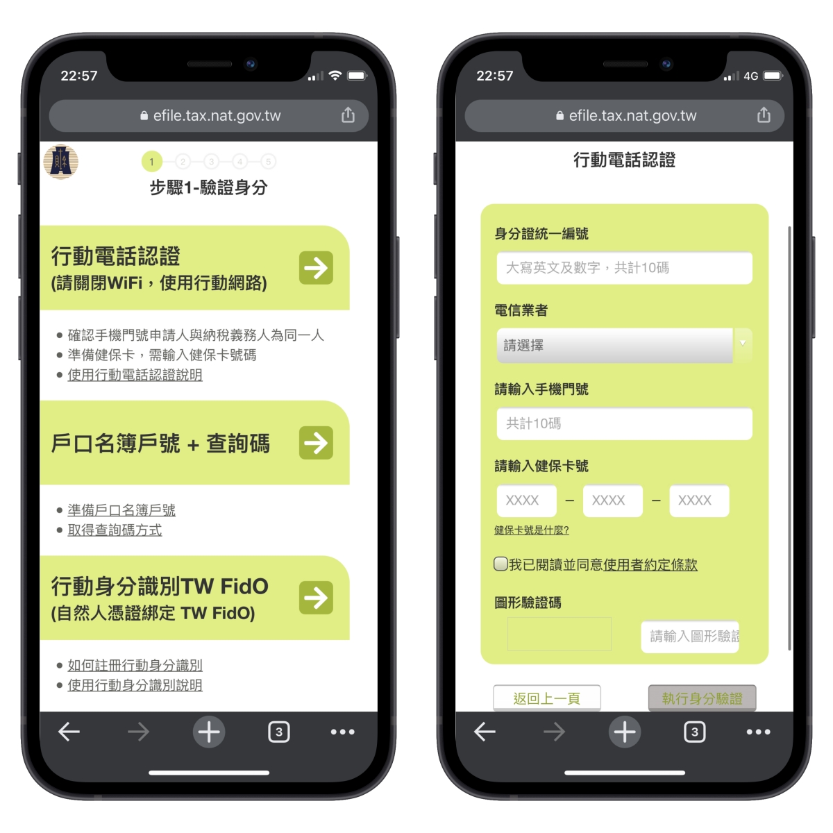 第一步驟就是要經由驗證身分,這步驟不論你是透過電腦網頁版還是手機都是必須的,不過手機版的驗證有一個部份要注意的就是要關閉 Wi-Fi 利用手機本身的行動網路來執行才可以,填完資料後就可以往下進行認證,手機版也很簡單的只要準備健保卡,輸入健保卡上的 12 位數字就可以。