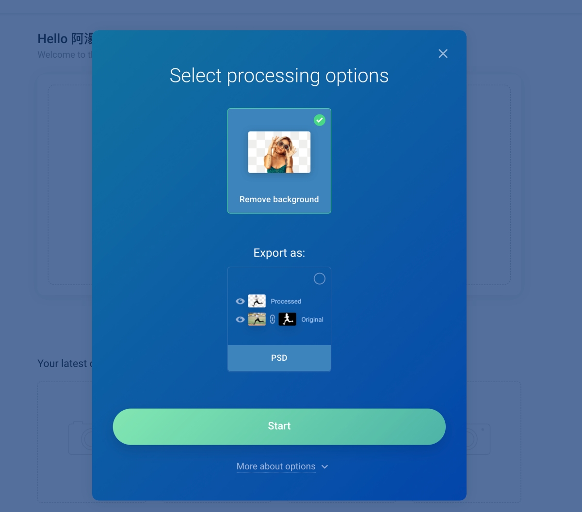 登入後,直接將要去背的照片拉進去。