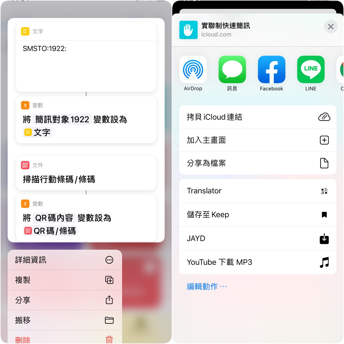 iOS 捷徑 - 掃描實聯制 QR 自動發送簡訊
