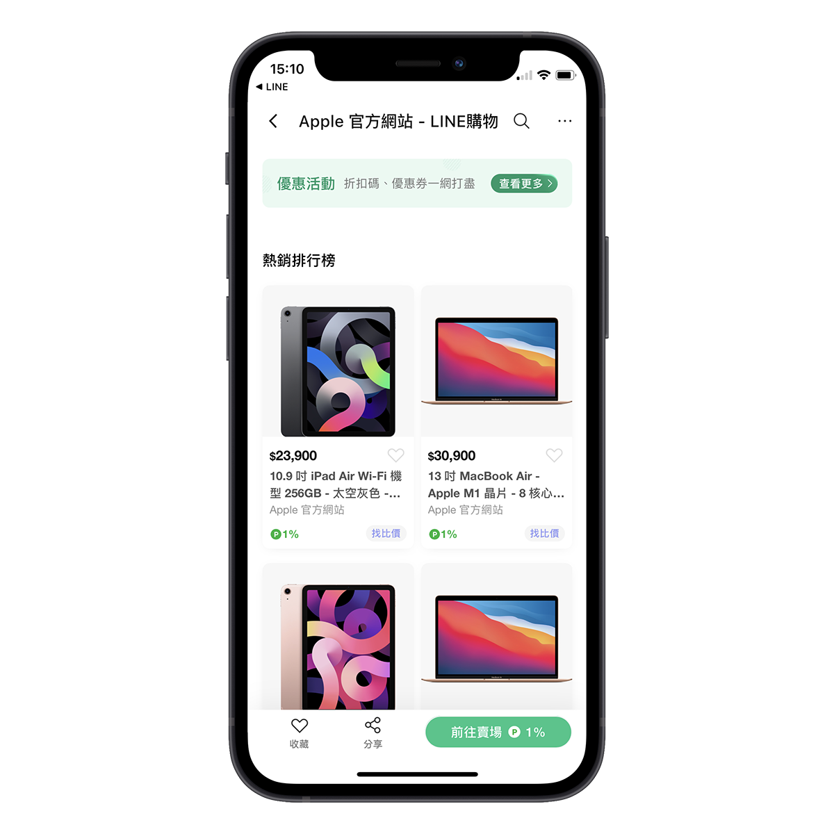 自從 LINE 推出 LINE 購物後,阿湯買東西時一定都是先上 LINE 購物再購物,因為除了原因用信用卡消費的回饋之外,額外還能得到 LINE POINTS 點數回饋,不論怎麼想都很划算,最近如果你正好有想買的 Apple 商品像是 iPhone、MacBook Air、iPad Air,或是像最近大家有測血氧的需求想購入 Apple Watch 等,一定要趁 6/16-6/18 這段期間,只要上 LINE 購物前往 Apple 購買,一律都有超高 8% 的 LINE POINTS 點數回饋,往下來我來算給你看!