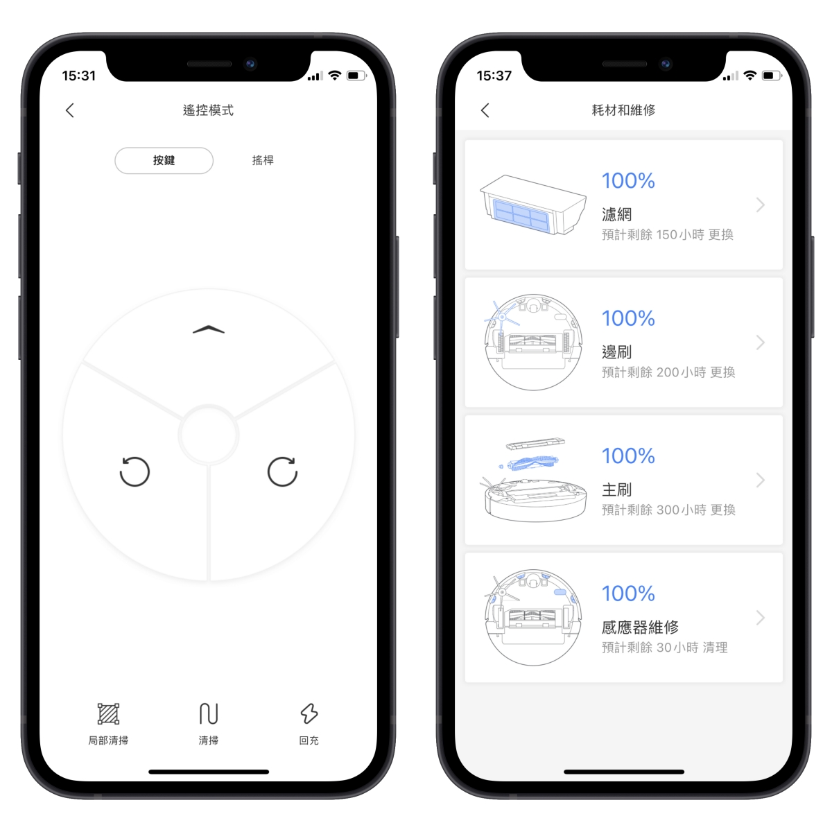 設定裡還有手動遙控模式,並且有耗材的更換時間統計,方便你查看才會記得要更換或清洗。