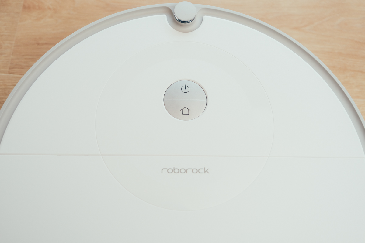 這次的 Roborock 石頭掃地機器人 E5 採用了白色配色設計,先前的 E4 則是黑色,在外觀的設計上同樣非常的有質感,在上方按鍵區也多了一圈亮面設計,如果這一圈設計成在充電時會呼吸亮燈循環,那應該看起來會很有科技感(下一代??)。