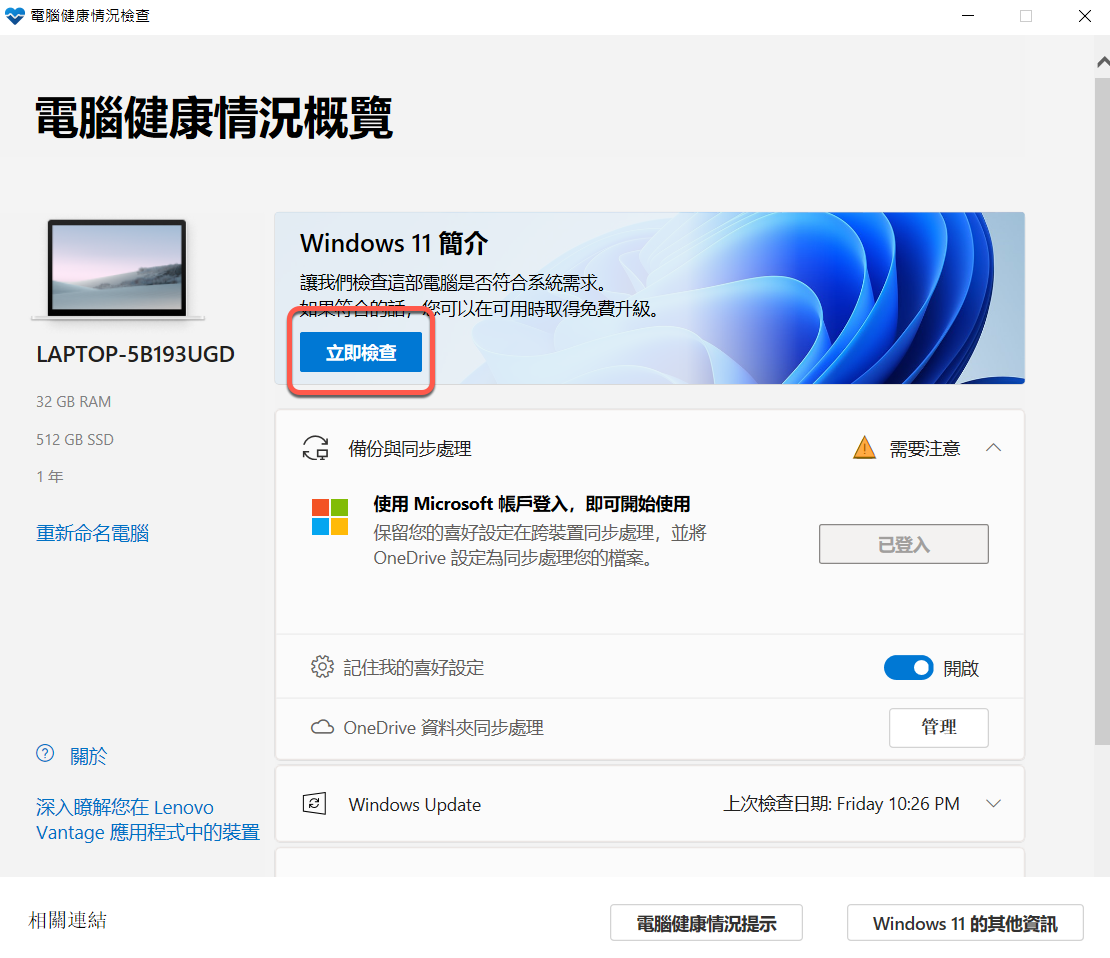 檢查是否能夠免費升級 Windows 11
