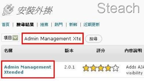 在搜尋欄中輸入(Admin Management Xtended)按下搜尋,點擊此外掛