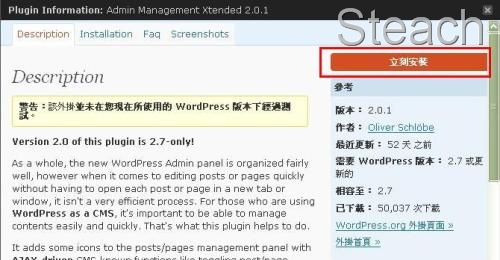 外掛安裝:我們就來用一下wordpress2.7的後台外掛安裝功能吧!!