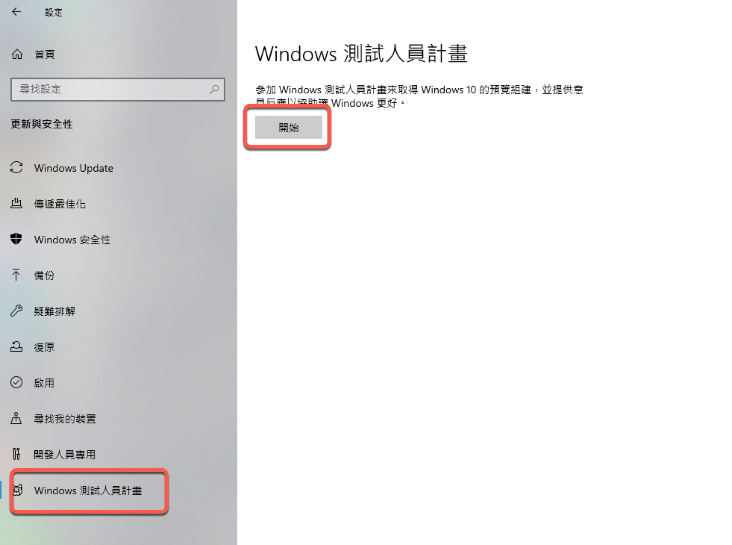 進入最下面的 Windows 測試人員計畫,點擊開始。