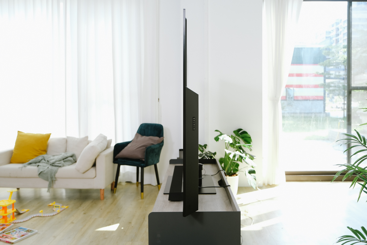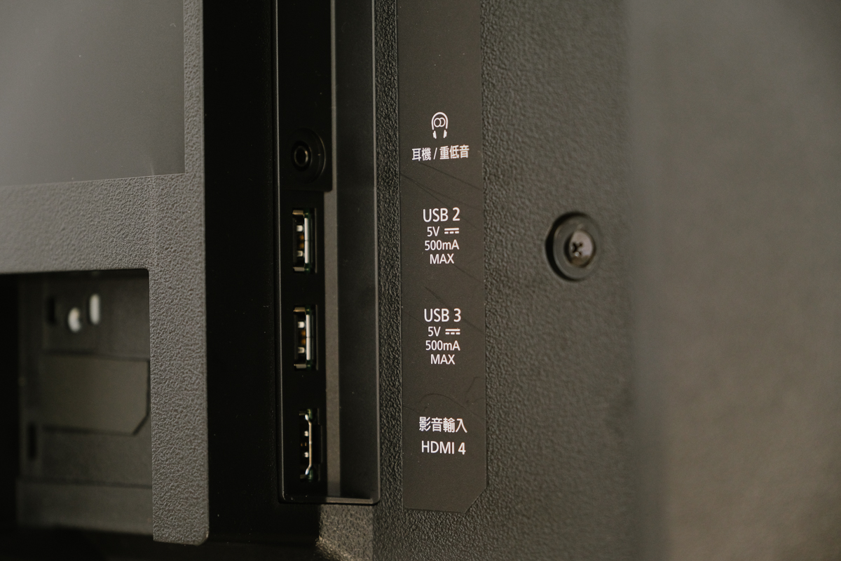 背面的連接埠全部集中在右側,方便你連接設備,像有些電視會做在中間,其實像這樣大尺吋的電視,在中間就會變的很不便利。