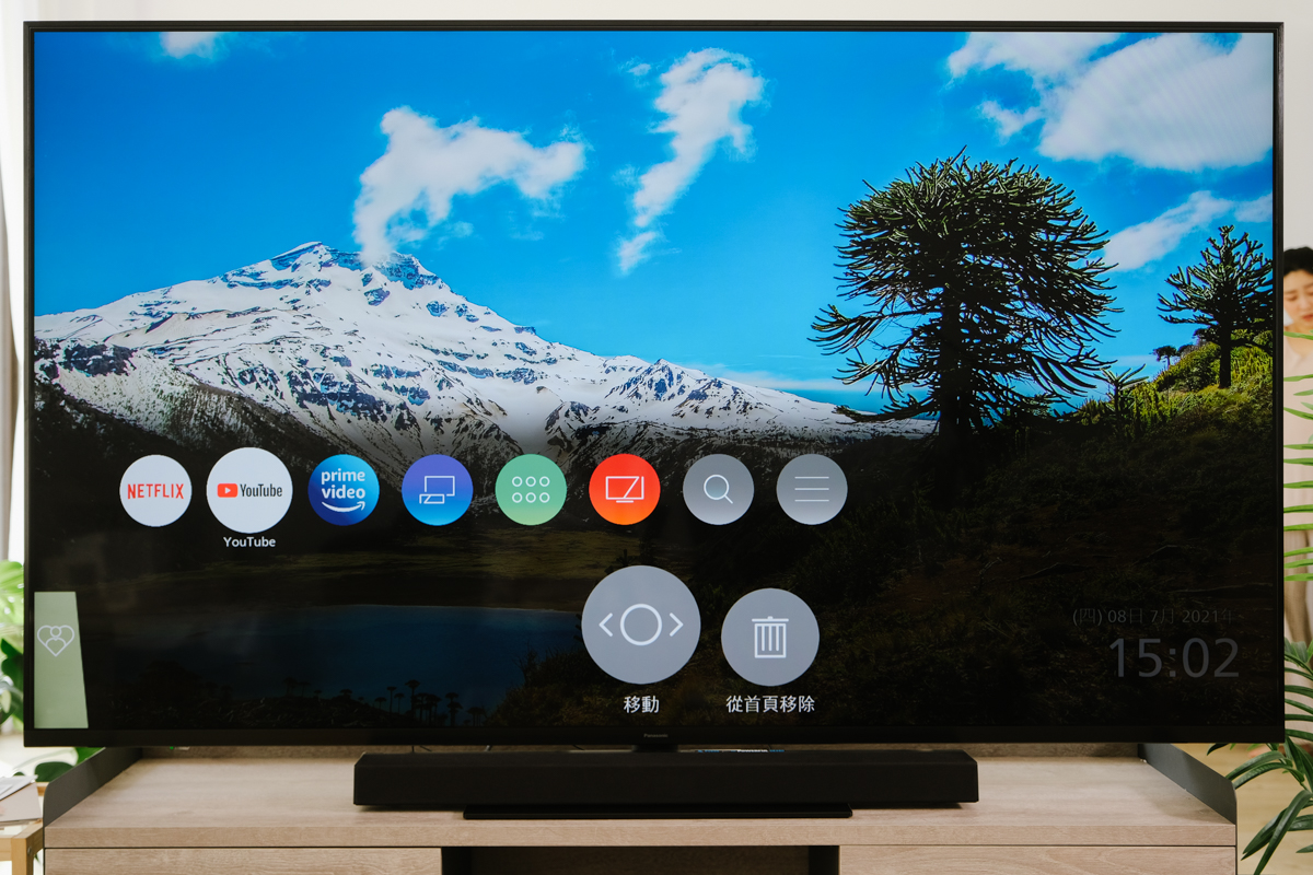 Panasonic TH-75JX980W 的介面採用他們獨家設計的 my Home Screen 我的首頁 6.0,平常只要按下首頁,就會在下方呼叫出快捷功能列,直接就可以選擇常用的 APP 來使用。