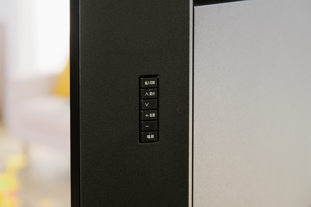 在背面的最左側上還有實體的操作按鈕,如果遙控器突然沒電的話,還可以從這裡做基本操作。