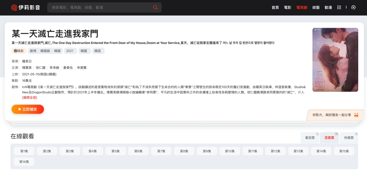 如果是劇集類的話,還會有分集數可以點擊,右邊同樣會有來源可以切換,不過像是劇集的話,要注意一下來源,有些來源可能沒有全集,有些會有,大家快去享用吧。