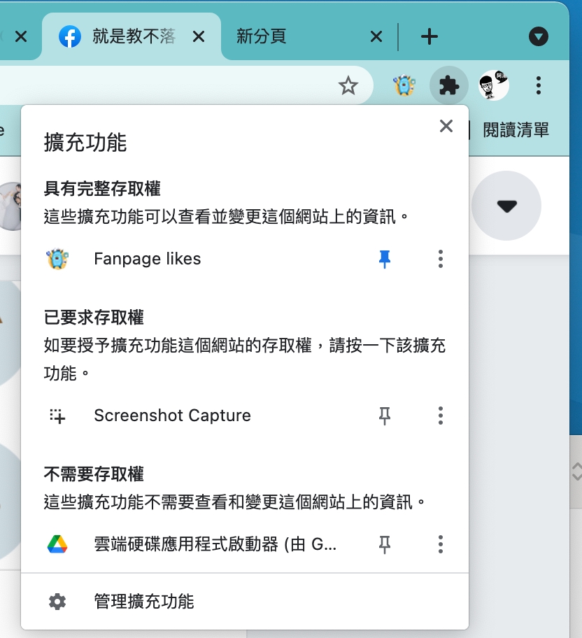 安裝完成後預設不會顯示在快捷列上,可以在那個拼圖圖示點擊後,將 Screen Capture 釘選上去就可以了。