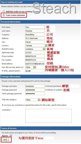 點擊 I am a new customer,填寫註冊資料,依下圖說明填寫即可