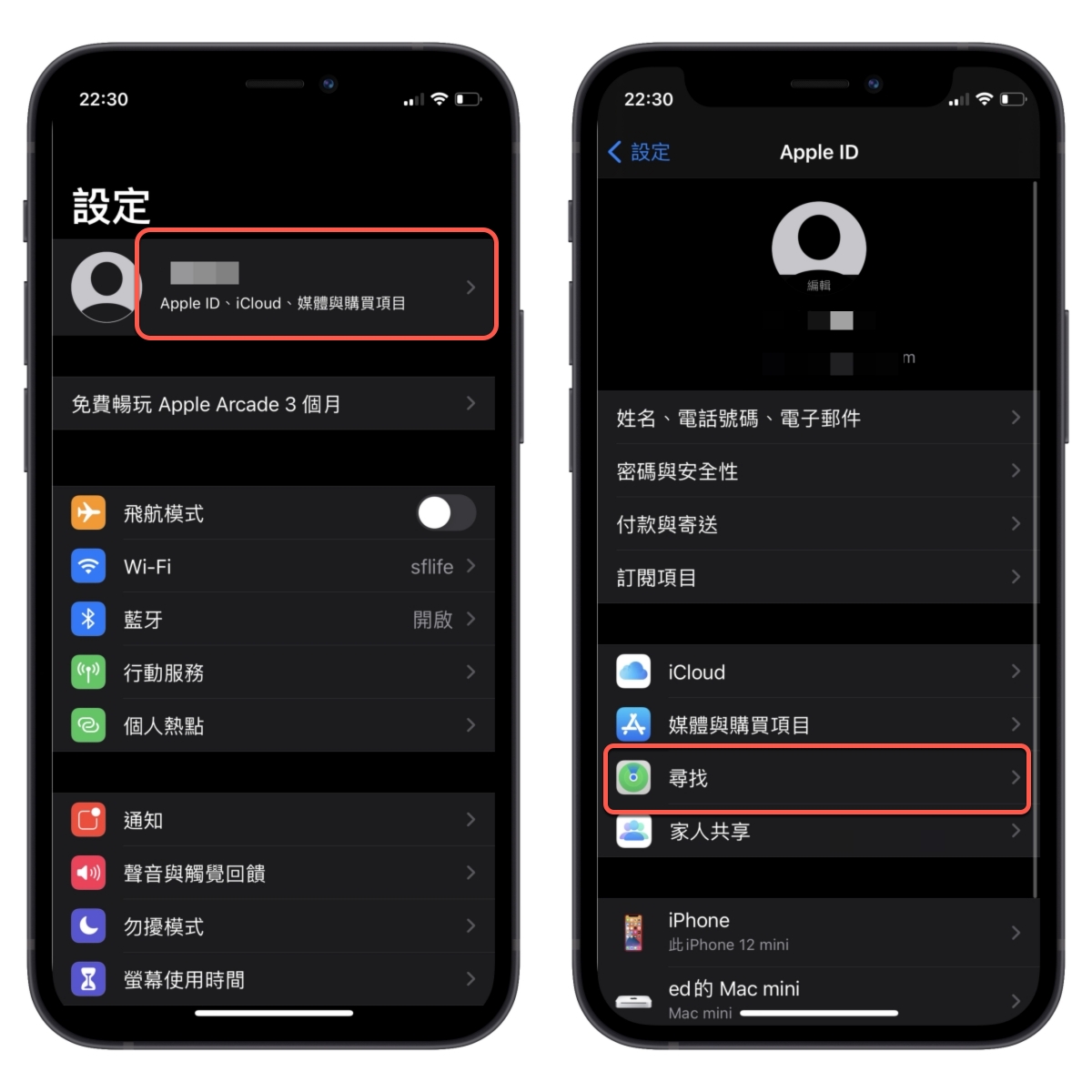 進入設定後,最上方第一個個人設定進入,然後再進入「尋找」。