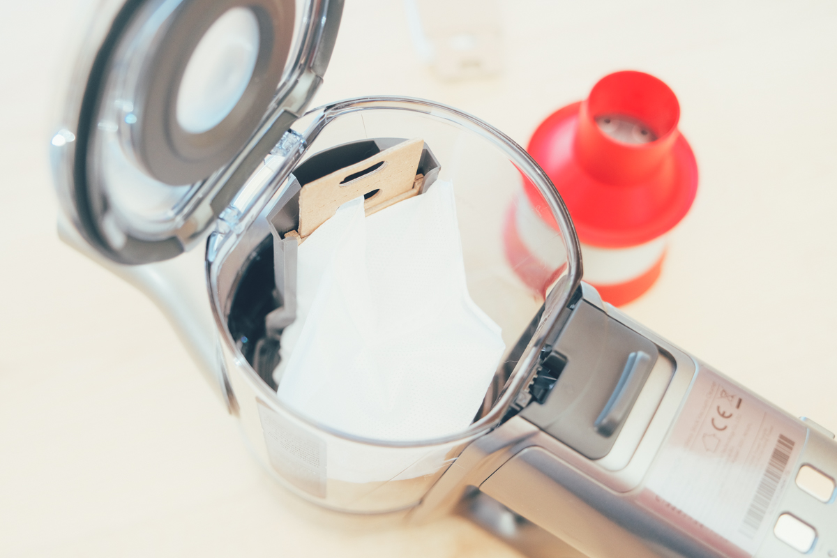 至於集塵袋會不會取出時造成垃圾掉出來?答案是不會,在你取出集塵袋的同時呢,也會將開口密封,直接就可以丟到垃圾桶或是暫時收在旁邊待下次繼續使用。