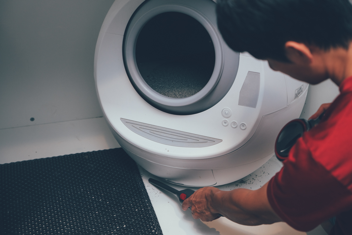搭配了延長軟管及長扁吸頭來清理這自動貓砂機周圍真的方便,平常如果要清這貓砂機就得搬開再吸,這樣搭配就方便多了。