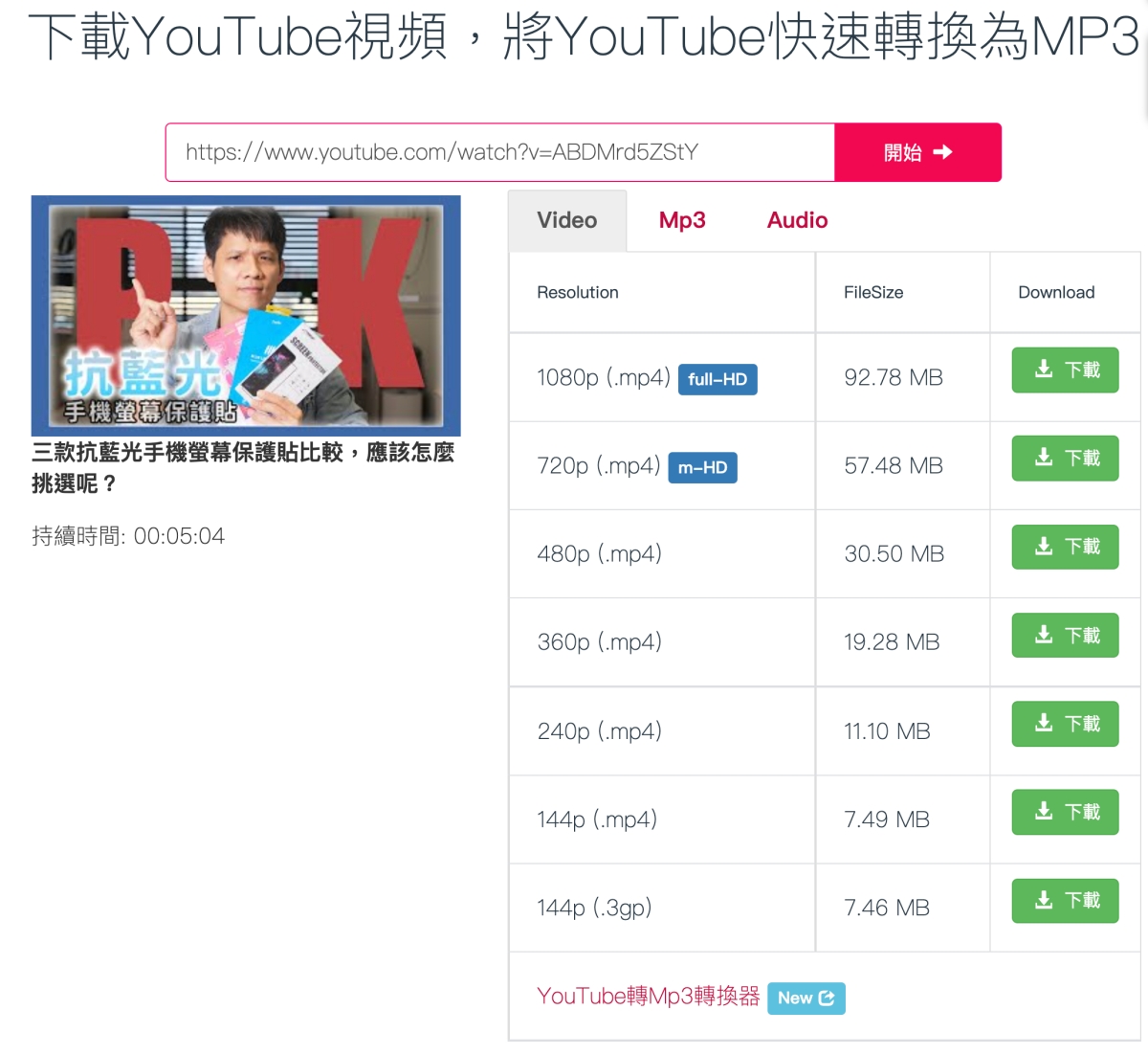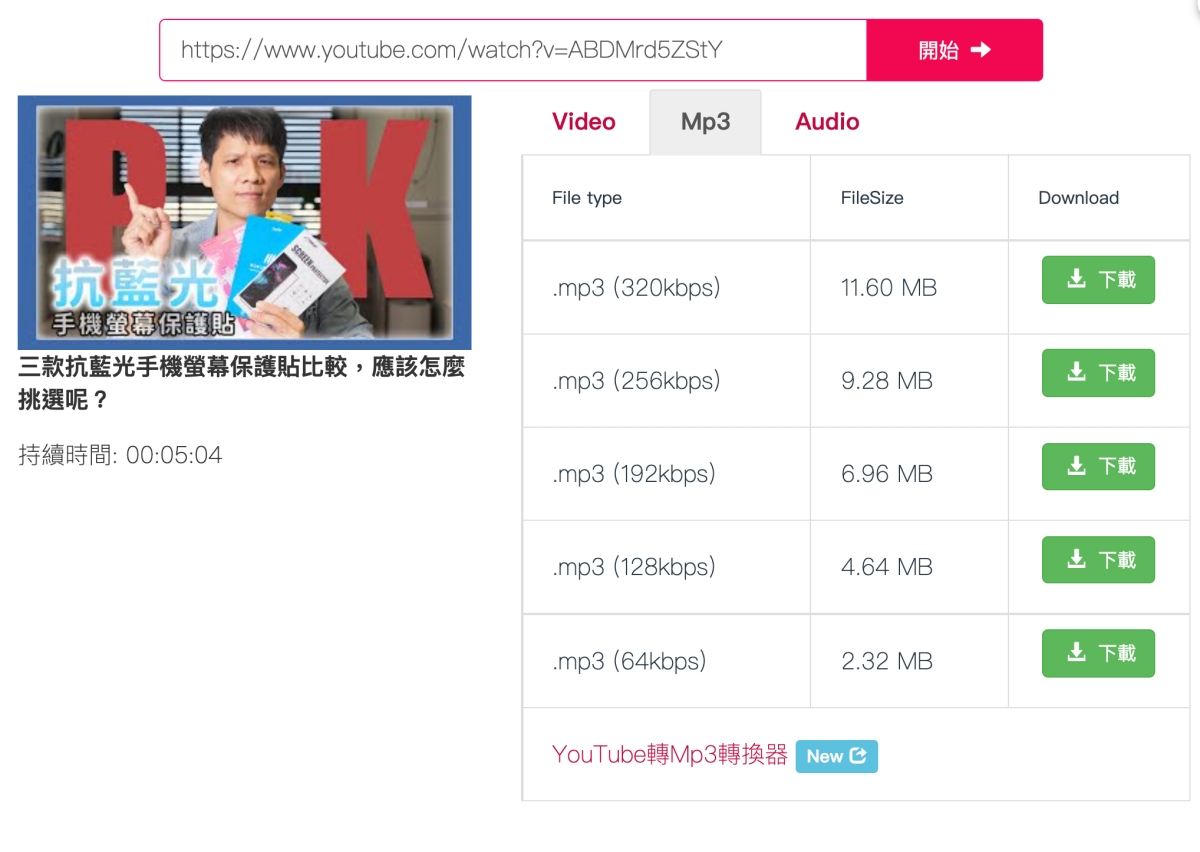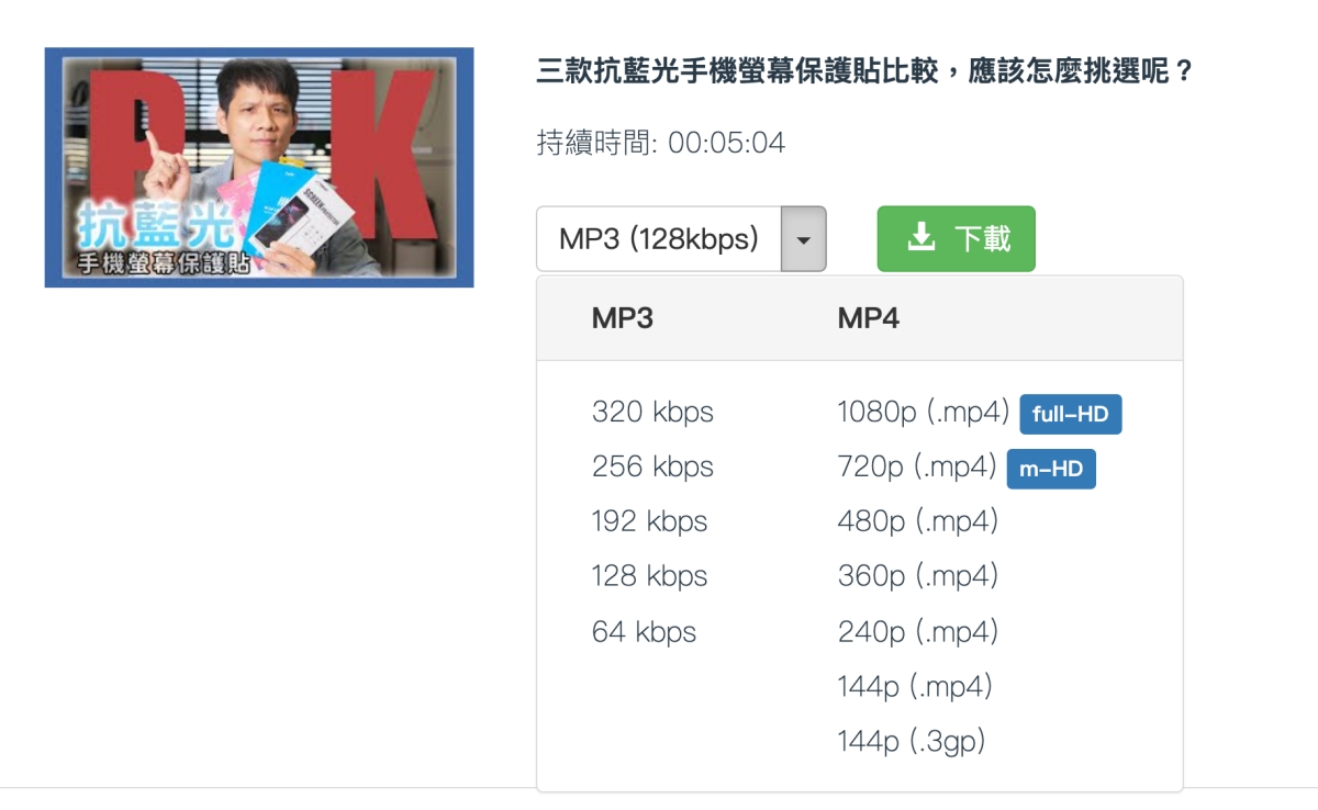 等一會後就會出現分析,並提供能夠下載的 MP3 及 MP4 規格給你選,以 MP4 來說可以選到 1080p 真的是相當不錯,不論壓縮率有多少都可以接受啦。