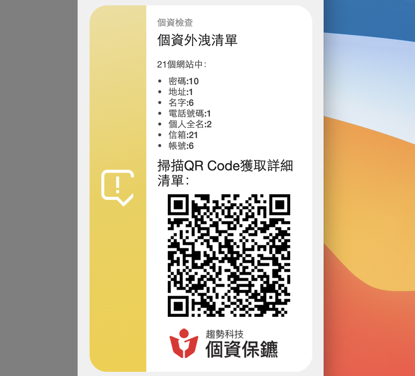 趨勢科技個資保鑣 APP:Android、iOS