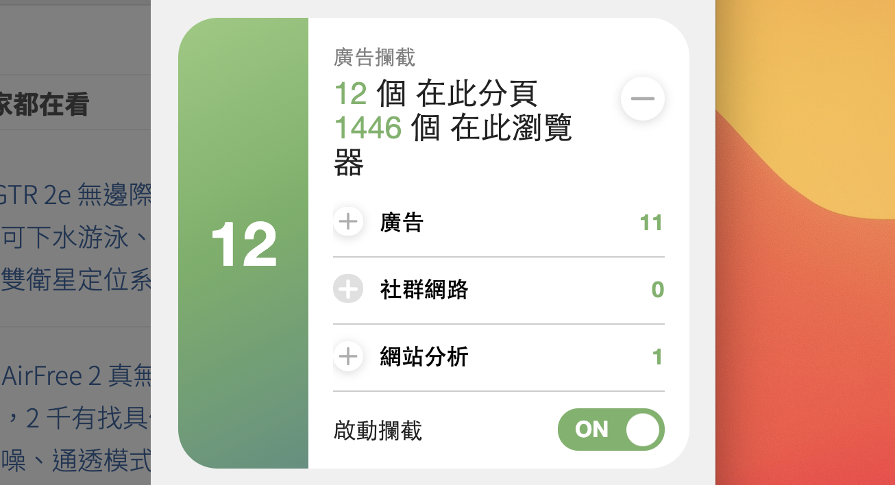 PS:不過阿湯身為網站創作者並不會鼓勵大家把廣告全部都攔截乾淨,畢竟有些廣告也可能真的會是你需要的內容,但是你可以在瀏覽一些廣告量真的太干擾人的網站時開啟,我想會對於閱讀上相當有幫助,更加的舒適。
