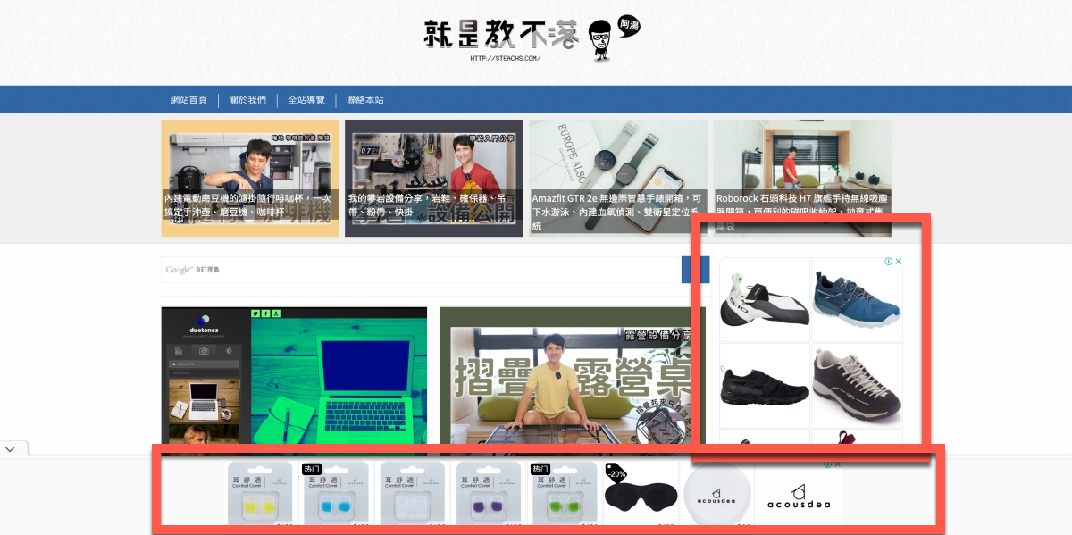 先給大家看看沒有開啟廣告攔截前,以阿湯的網站首頁來說,右側及下方在第一畫面就會看到廣告,當然有些線上服務的廣告量更是驚人啦。