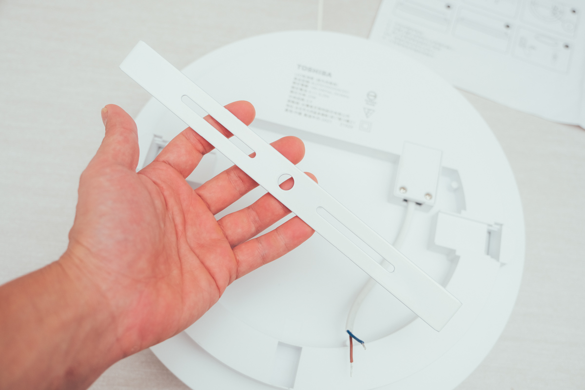 盒裝內附一組 TOSHIBA 和日LED吸頂燈、一組遙控器、一份安裝/使用說明以及一組安裝用螺絲組,TOSHIBA 和日LED吸頂燈外形非常簡潔,阿湯個人是喜歡這樣清爽的設計,像有些吸頂燈就會設計的很浮誇,但華而不實,還不如回歸本質先把燈源弄好吧....