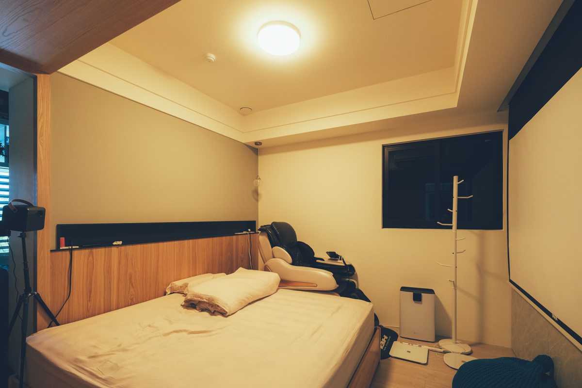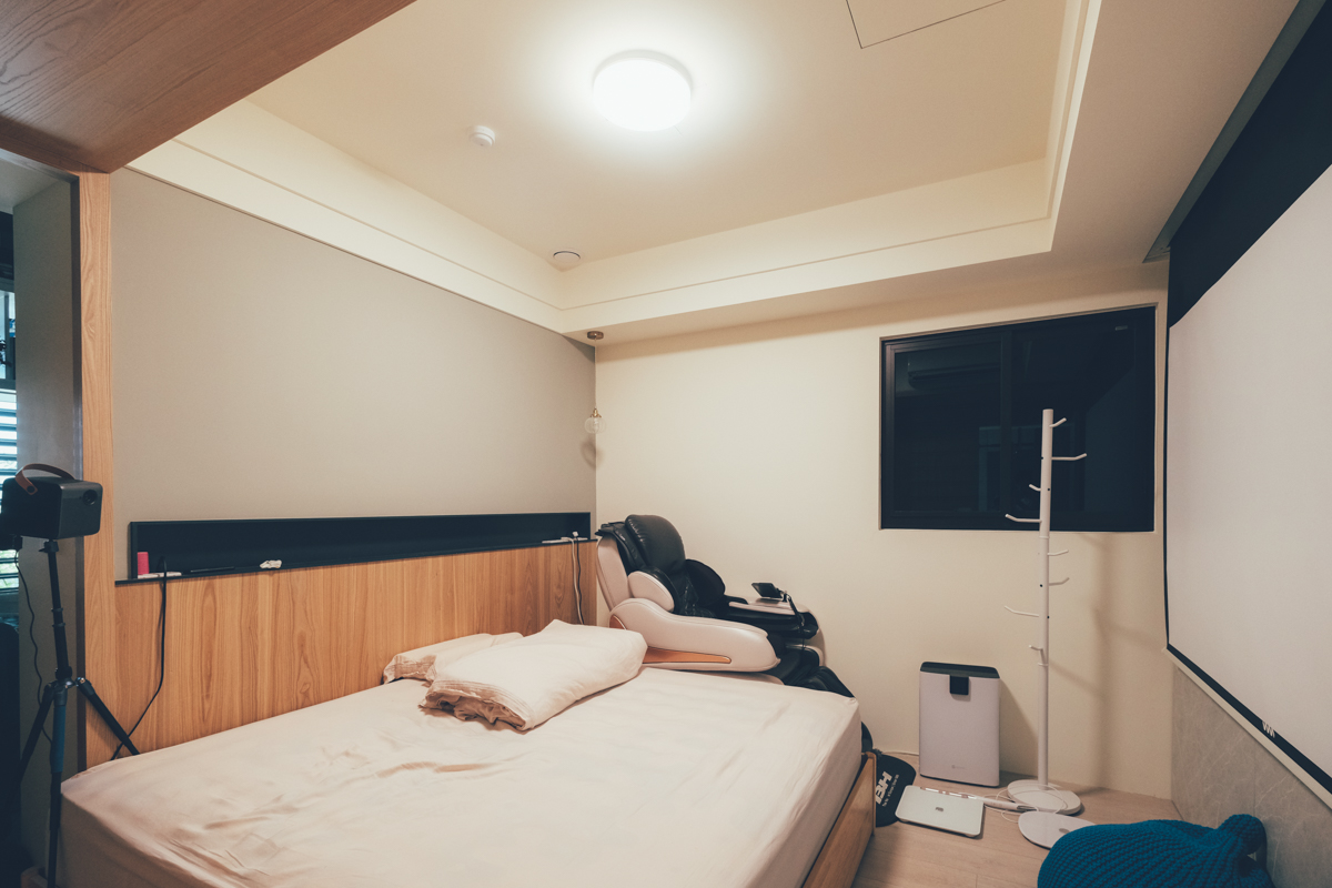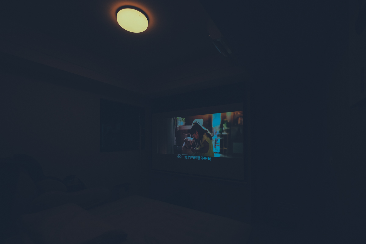 睡前大概 1 小時左右我們會開啟家庭劇院模式,打開投影機,不過之前因為沒有夜燈,只能全關燈,而現在搭配 TOSHIBA 和日LED吸頂燈可以開啟最低亮度的夜燈模式來看投影機,可以讓房內有基本的亮度同時不影響投影機的光源。