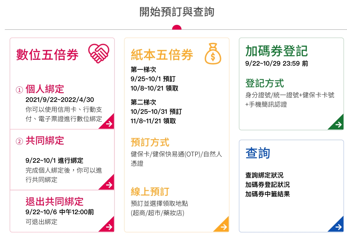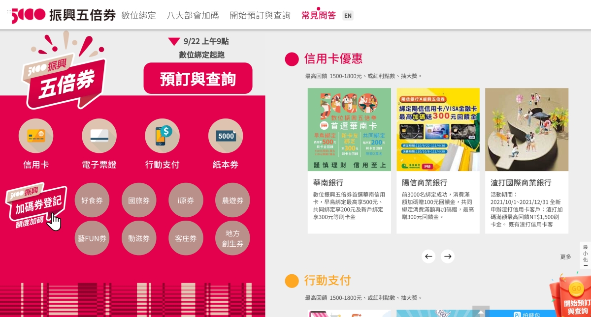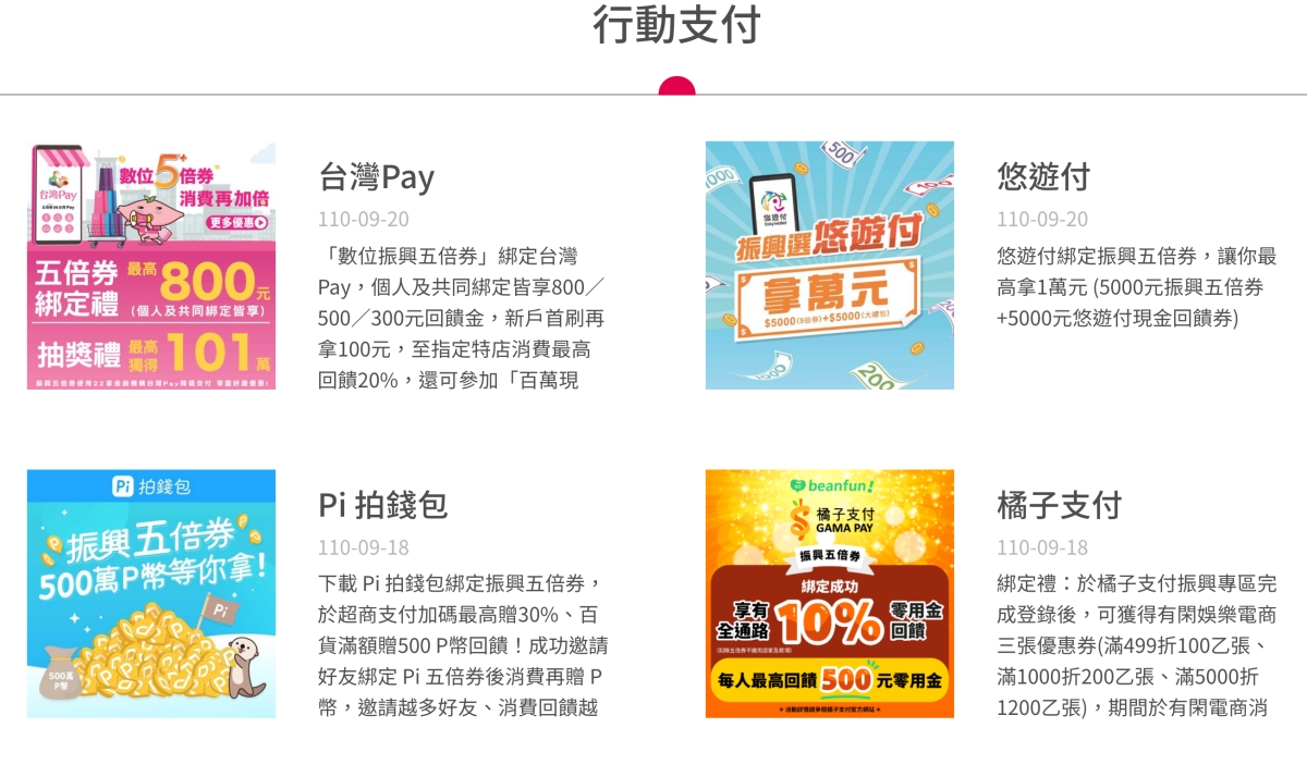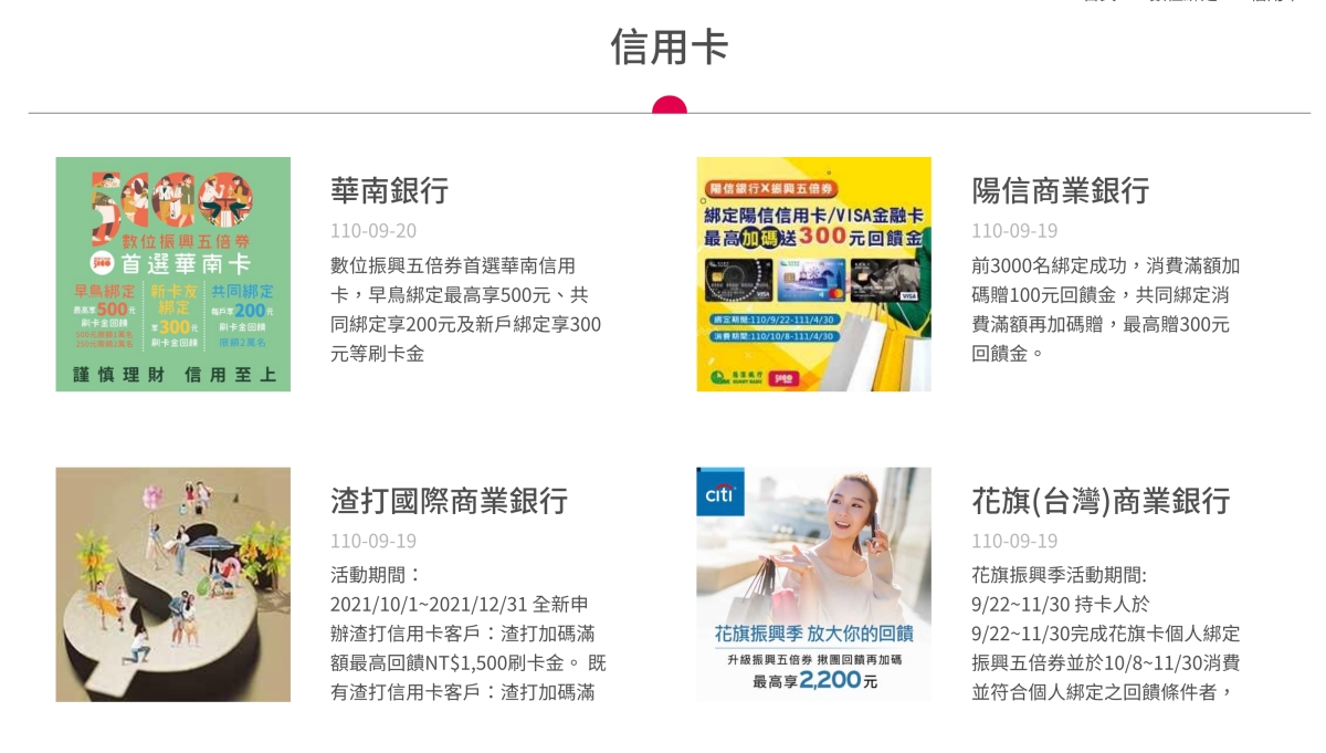 在做綁定之前,推薦大家可以先到振興五倍券官網查看資料,先了解一下各種綁定方式,比如你想要綁定信用卡,也可以看看你慣用的信用卡有沒有額外的優惠。