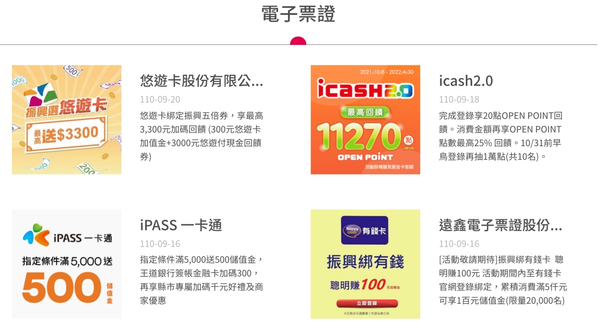 各家電子票證像是悠遊卡、iCash 2.0 等,也都有優惠,可以仔細看看。