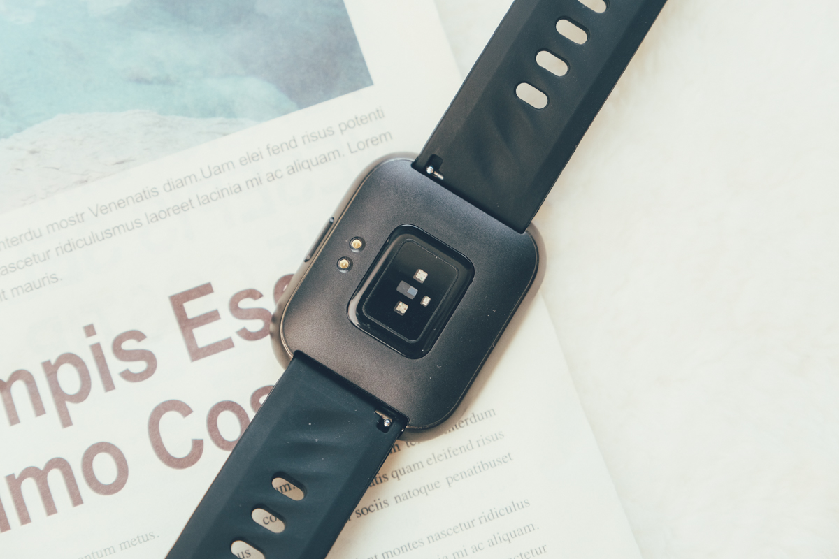 背面的感測器支援量測身體四大重點資訊:血壓、血氧、心率、體溫,現在大多是支援血氧、心率,比較少見的是血壓跟體溫,有些有偵測溫度,但主要是針對環境溫度,並非體溫,這是有差異的,在購買時可以注意一下量測的溫度功能是針對什麼。
