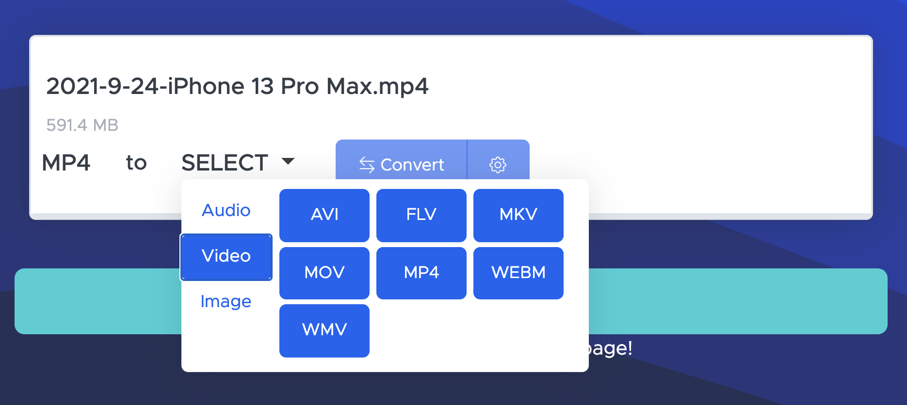 而影片格式有更多的選擇,可以轉成音樂檔、其它影片格式或者是 GIF 動態圖檔,這轉檔服務已經算是相當佛心來著,沒廣告,也不用註冊,非常實用。