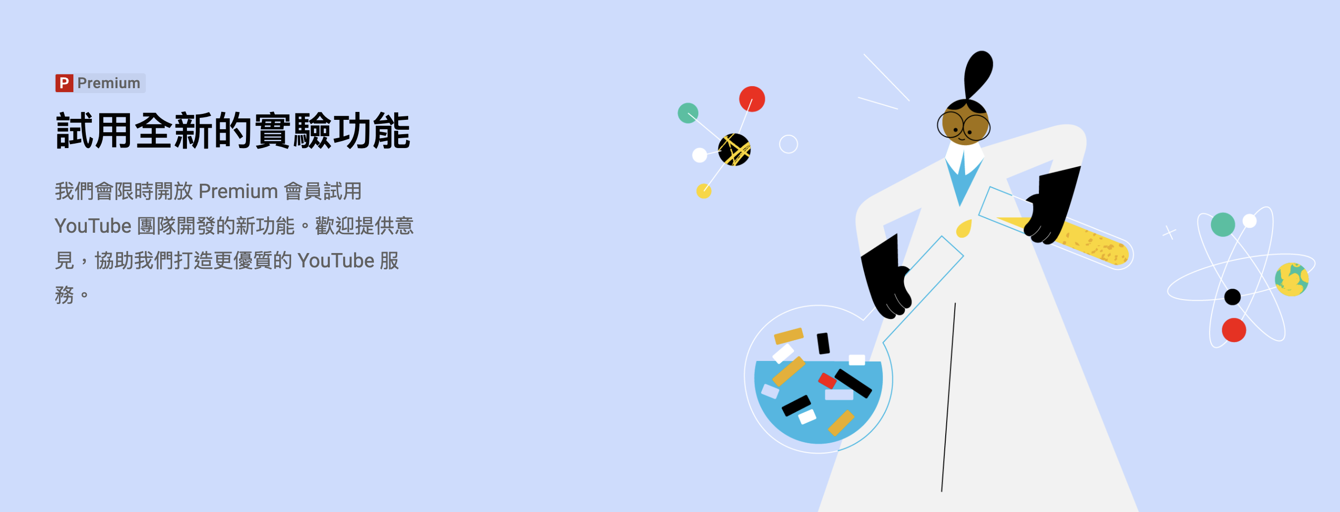 登入 Google 帳號後,進到 YouTube 實驗功能畫面(點這裡)。