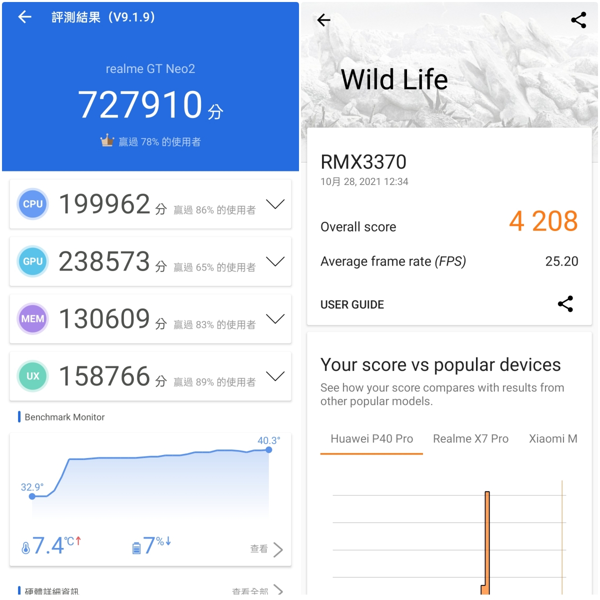 至於為什麼可以達到這樣的散熱效果,主要是因為這次在 realme GT Neo2 的處理器週圍採用了類鑽石顆粒凝膠,再搭配八層的 3D 立體結構鋼化 VC 散熱,可以更快速的將熱能散發出去,雖然講是這樣講,但我沒想到手機的散熱效能可以達到這樣的地步。