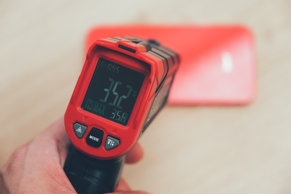 至於散熱效果到底有多神?給大家看一下,這是阿湯玩遊戲 20 分鐘後所測試的機背溫度,已經來到 35.2 度,而且是沒有邊充電的情況下,如果再玩更久應該最高會達到 40 度左右,iPhone 12 mini 真的很容易發燙。