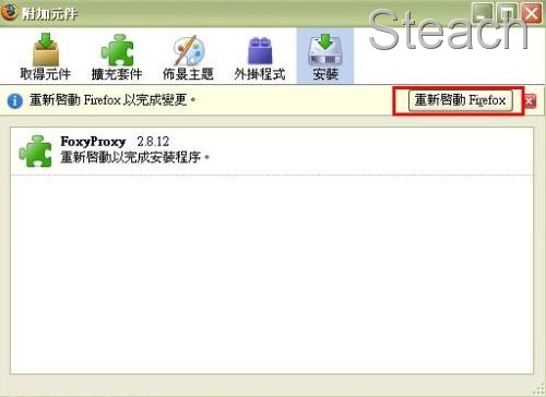安裝完畢會要求你重新啟動Firefox