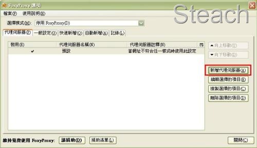 進去時會發現有一個預設的設定,此預設定不用刪除,待會兒站長再說明吧!按下新增代理伺服器