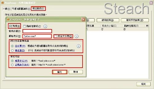 例如站長設定樣式為 *.yahoo.com.*,勾選白名單,則表示只要網址含有設定樣式的都使用代理伺服器,如勾選黑名單,則表示除了網址含有設定樣式不使用代理伺服,其餘皆使用!設定完按下確定,可能會看的有一點模糊,大概設定幾次就會懂站長的意思囉!如果還是不了解,那就趕緊拉到下面舉手發問吧!