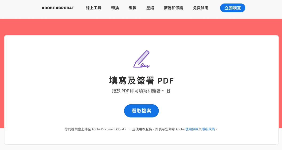 簽名的功能,一點擊就會先跳到線上工具的畫面,將你要簽名的 PDF 檔案上傳。