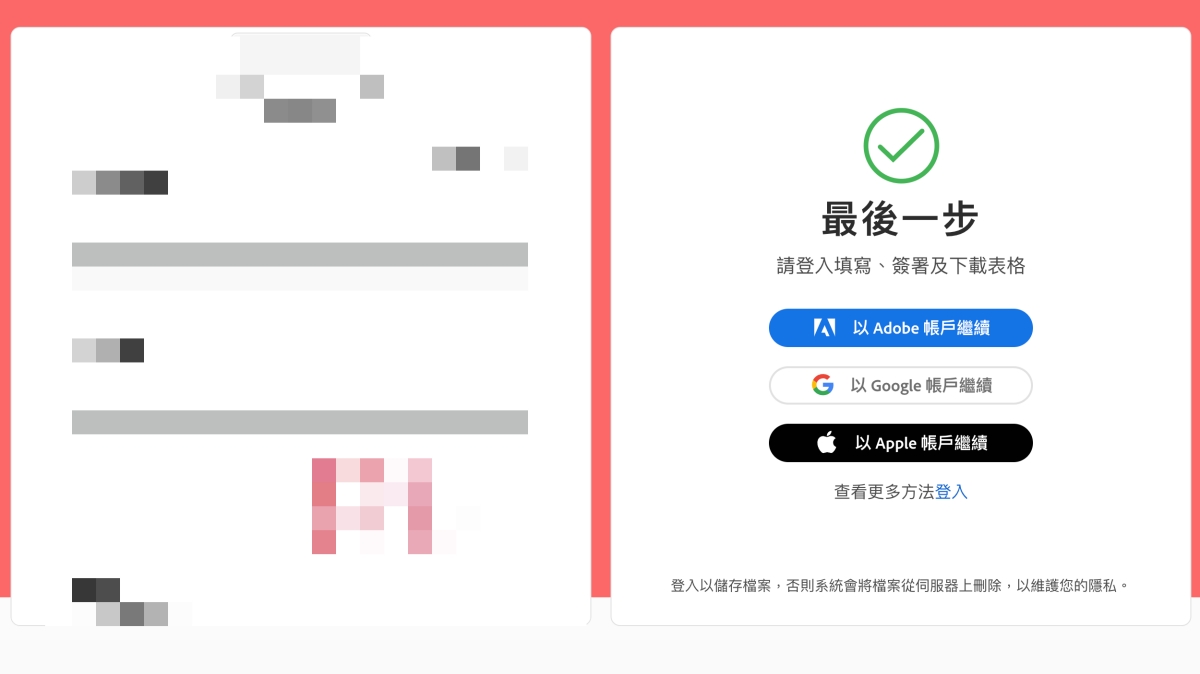 然後登入 Adobe 帳戶,或是透過 Google、Apple 帳戶登入也可以。
