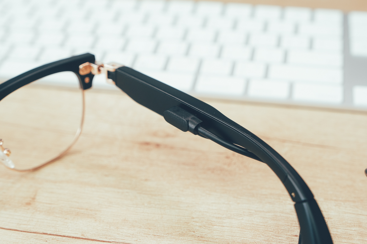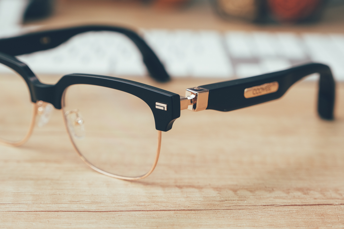這款 COOYEE 智慧柔光眼鏡採用記憶高分子材料(TR90),具有強韌、耐撞抗磨且親膚的特性,超輕量化的鏡框讓整體的重量僅 45g,而且整體的設計只會覺得這是一款眼鏡,看不出來是結合了耳機。