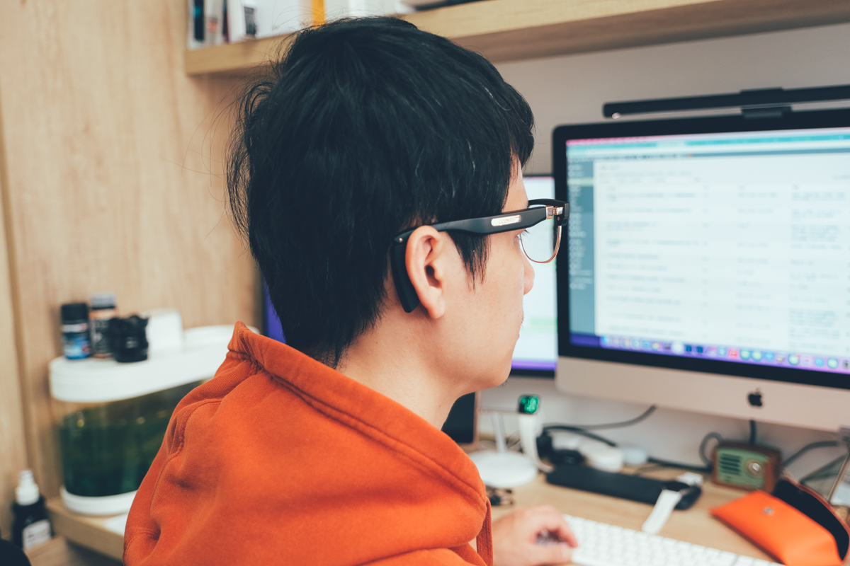阿湯本身沒有近視,但有很輕微的飛蚊症,所以偶而會使用抗藍光眼鏡,在家如果是搭配藍牙耳機或全罩式耳機的話,顆老大跟我講話大概就是八成聽不到,等他拍我背的時候,轉頭就會看到他的肩膀上都冒火了,所以像骨傳導技術的藍牙耳機是最適合我在家工使用, COOYEE 智慧柔光眼鏡,直接就結合我的二種需求(是聽到我心裡的聲音??),真的非常的實用,而且鏡片可自行替換,如果你不需要抗藍光,那也可以換成墨鏡鏡片外出使用,或者換成近視鏡片做為你的主要眼鏡,平常就算是用到沒電了,也可以自然的就當做自己的眼鏡使用。COOYEE 智慧柔光眼鏡不用再區分眼鏡跟耳機,隨時出門戴著就搞定二種需求。