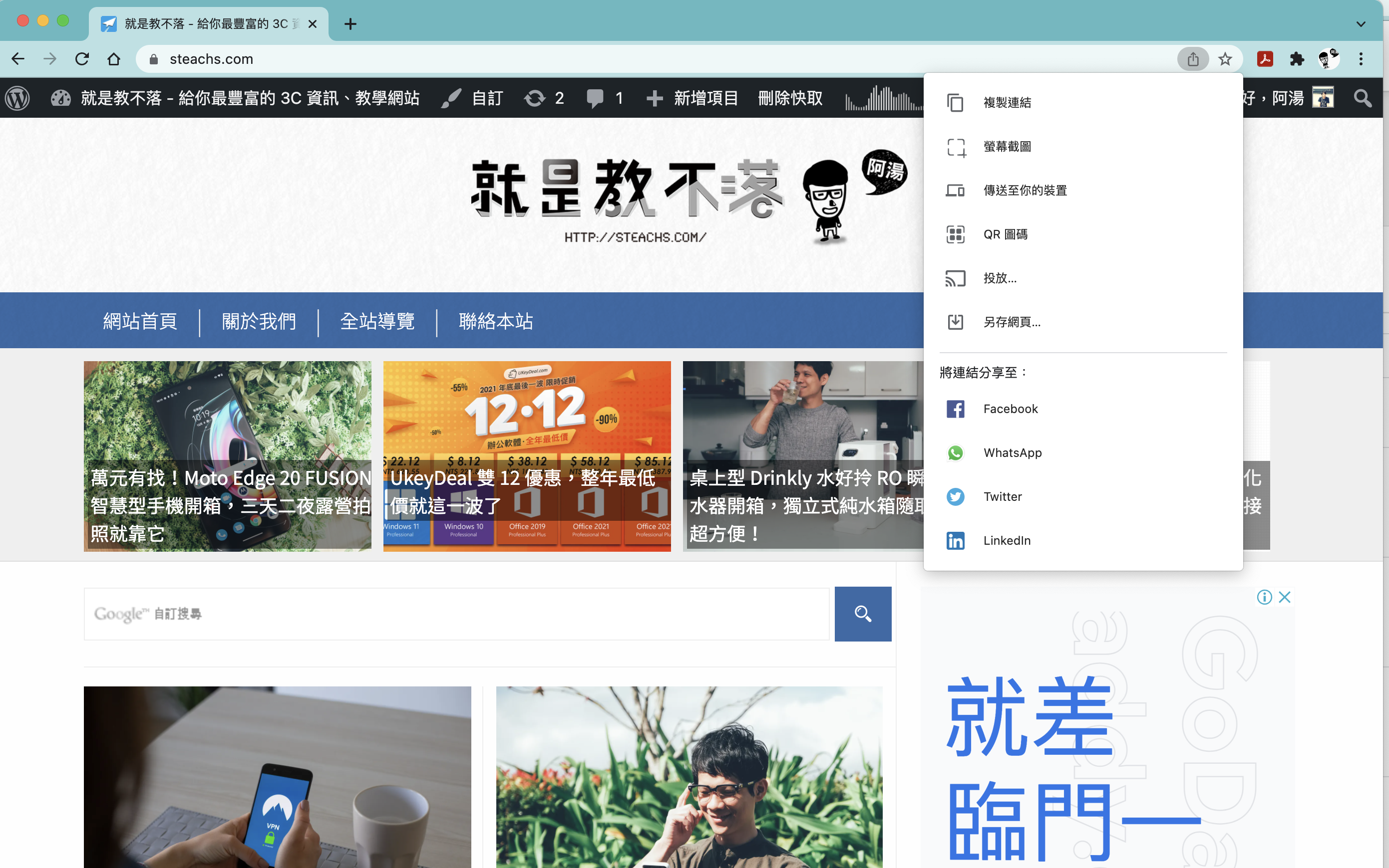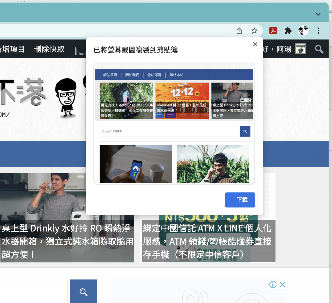 接下來不論你瀏覽哪一個頁面,只要在網址列右側按下分享,就可以看到多了一個「螢幕截圖」的功能,按下去後就可以圈選要截圖的範圍。