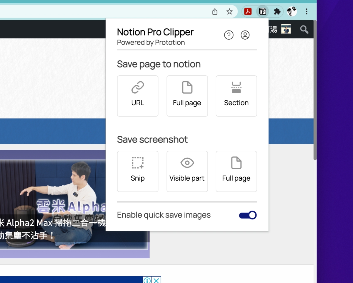 Chrome 瀏覽器擴充套件「Notion Pro Clipper」