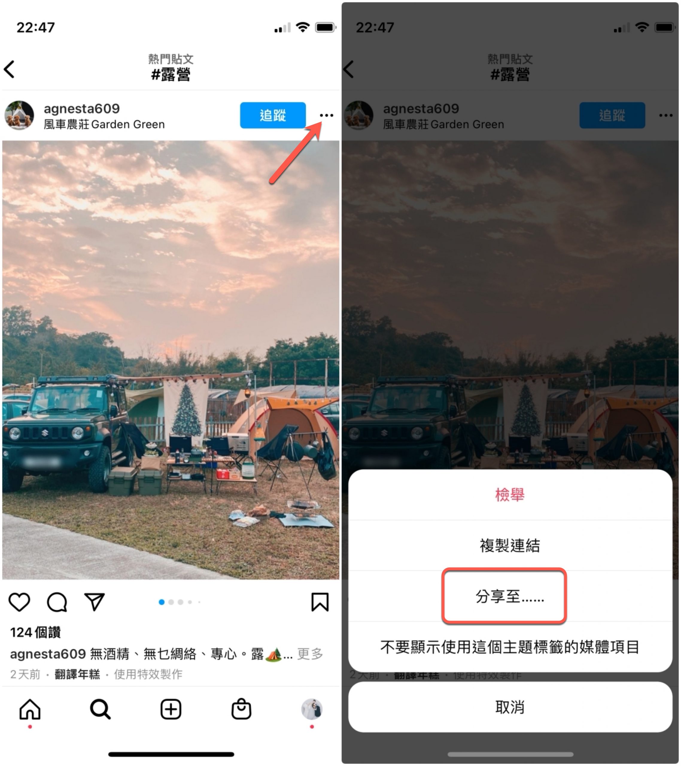 IG 會多一個小步驟,是要按分享至,然後就一樣可以選擇備忘錄。
