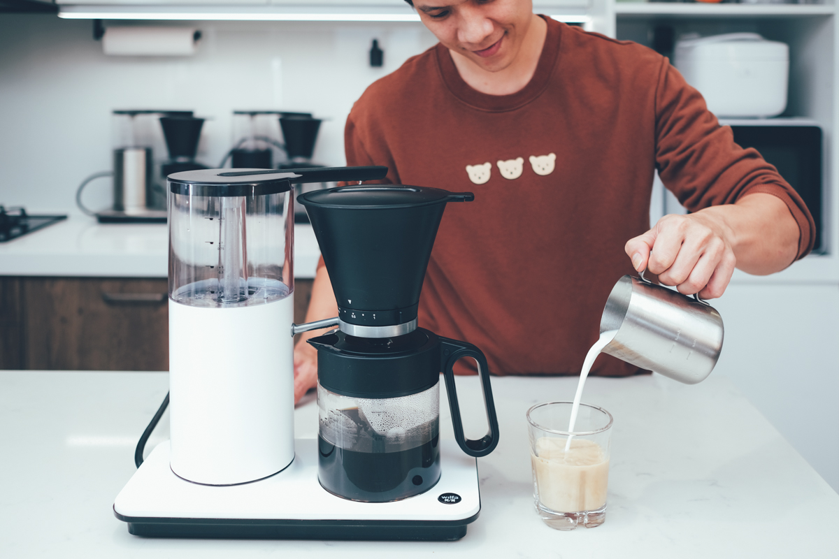 只要再依喜好加入牛奶就變成了拿鐵,另外也推薦大家,如果是想要泡冰美式或冰拿鐵,由於會加冰塊被稀釋,在沖泡時可以調最慢速出咖啡,或者可以先調整 Drip Stop,讓咖啡多泡 10~15 秒後再出,這樣味道會比較濃一點,阿湯覺得口味會更好,給大家參考。