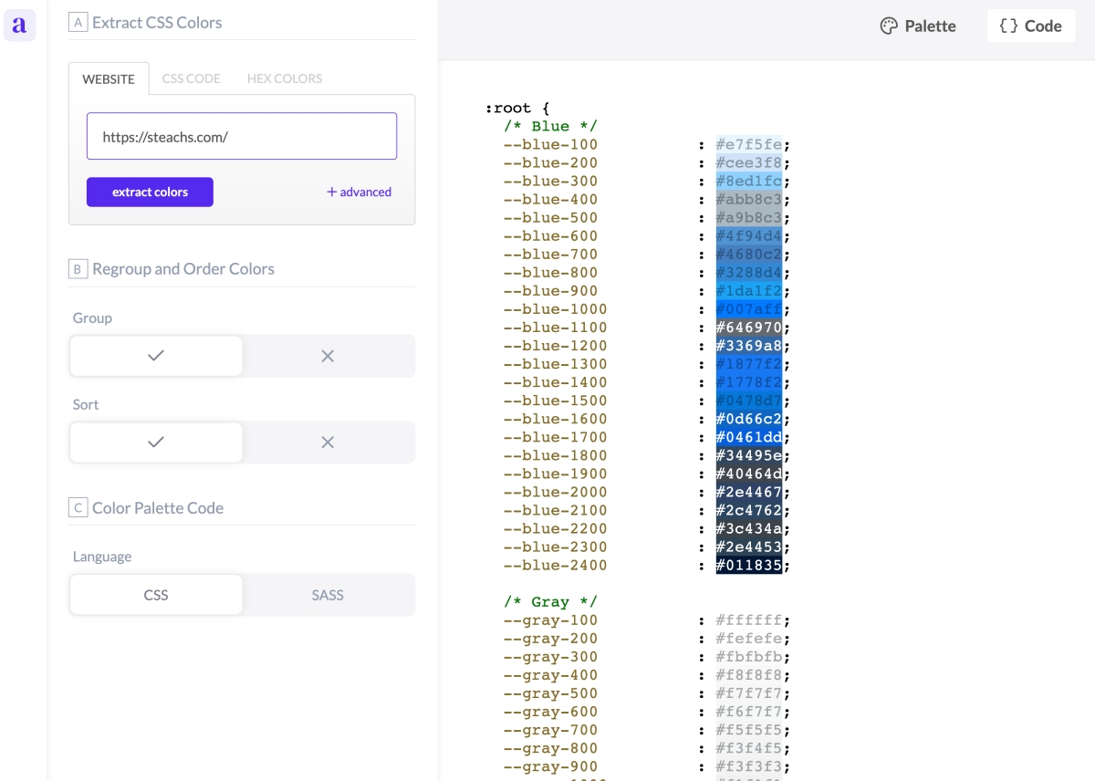 網站:https://alwane.io/進入網站後直接輸入網址後就可以解析顏色出來了,右邊會顯示網站上所有用上的顏色,當然這不是單純只有結構,包括上面的圖片等,顏色也都會被分析,不過還可以很明確的看到網站上的主色是哪些。
