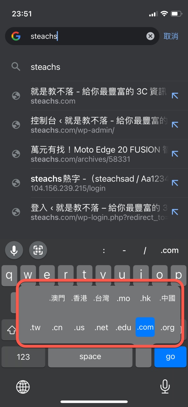 首頁 › 手機應用教學 › iOS 小技巧,網址結尾的 .com .org .net 不用自己打,長按一下 . 就可以選 iOS 小技巧,網址結尾的 .com .org .net 不用自己打,長按一下 . 就可以選 發佈日期:2022/1/18 作者:阿湯 分類:手機應用教學 阿湯最近才發現 iOS 的鍵盤上有個很實用的功能,就是當你在網址列輸入時,長按「.」,就可以直接選擇網址的長用結尾,比如像是 .com .org .net .tw .edu 等,就不用輸入那麼多,可惜不能自訂這個選單裡的內容有哪些,不然就可以自己新增或修改更多不同的網址後綴,鍵盤小技巧真的還蠻多的,阿湯會再陸續跟大家分享。 iOS 小技巧,網址結尾的 .com .org .net 不用自己打 當我們在輸入網址時,在下方的鍵盤 . 長按。 就可以跳出網址後綴的選單囉,是不是覺得超實用的。 延伸閱讀 iPhone 教學 2026:5 招必學 iOS 19 隱藏技巧,釋放 Apple Intelligence 強大潛力 2026/1/29 【LINE教學】2026最新版!5招必學隱藏技巧:一鍵釋放空間、聊天室分類與AI實用功能 2026/1/26 反詐戰警 - Whoscall 的替代方案,免費一年試用,還有 VPN 網路防護功能 2024/12/11 如何直接從 iCloud 下載全部的照片?還能一次備份在 iCloud 上的各種資料 2024/9/23