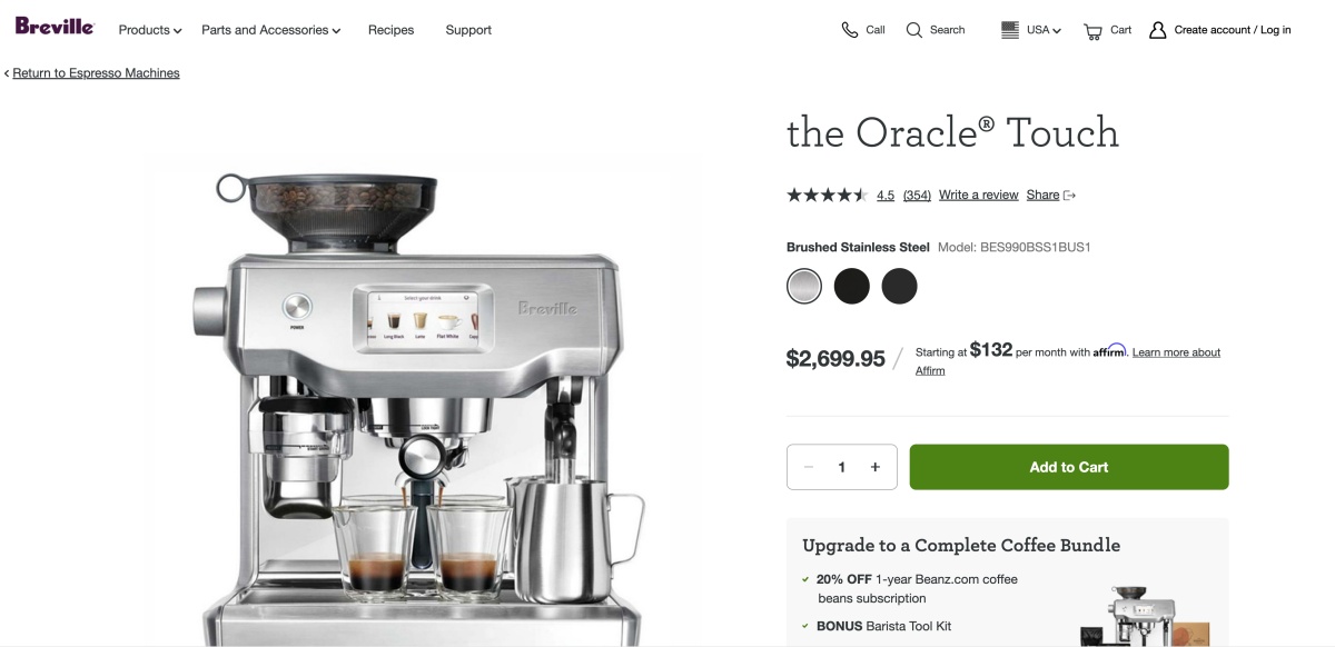 Breville 的咖啡機,可以正常瀏覽國外的頁面,但當你要結帳時會被強制導回台灣的代理商頁面(我不確定現在還有沒有),當時我也是透過 VPN 才解決了這個購買的問題。