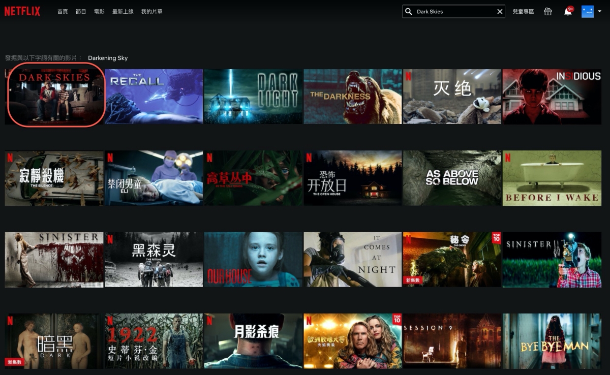 以 Netflix 來說,同樣的帳號,在不同的國家 IP 下,會顯示的內容也會有所不同,畢竟每個國家的分級或審核會有不同,或者有些影集的字幕還沒有繁體中文也可能不會上架台灣,像下圖的 DARK SKIES 就是在透過 VPN 跨區後才看得到,所以透過 VPN 跨區的話就能解鎖看更多內容。