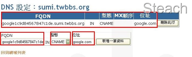 FQDN中輸入〝驗證字串.域名〞如:google1calkjfaefa.sumi.twbbs.org