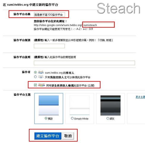 協作平台:http://sites.google.com/a/sumi.twbbs.org(google+域名)
