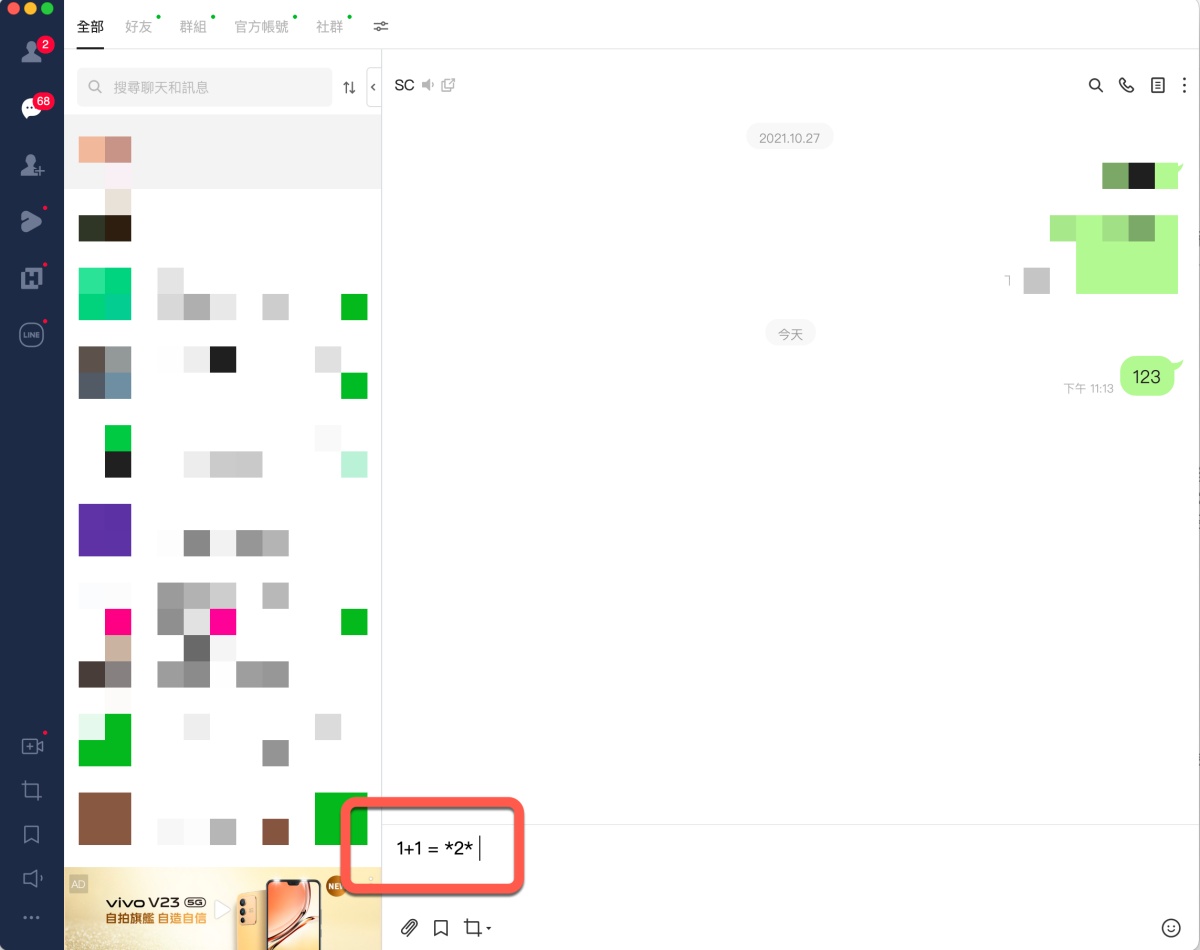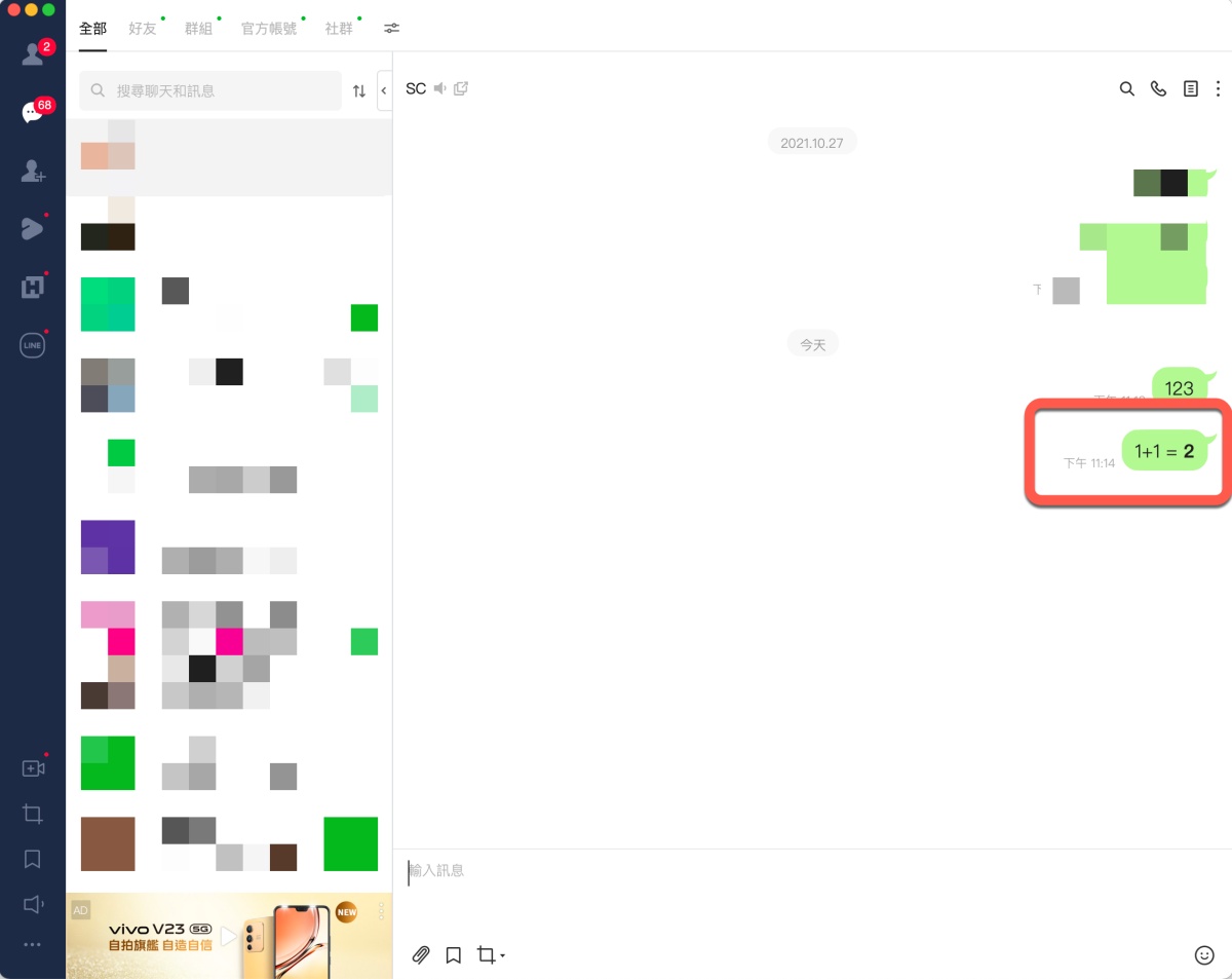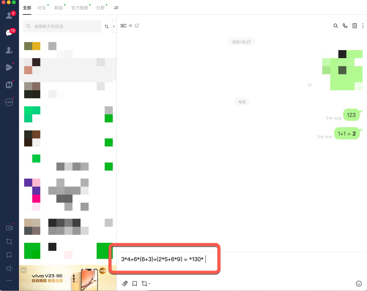 LINE 隱藏小技巧,輸入算式加上等號